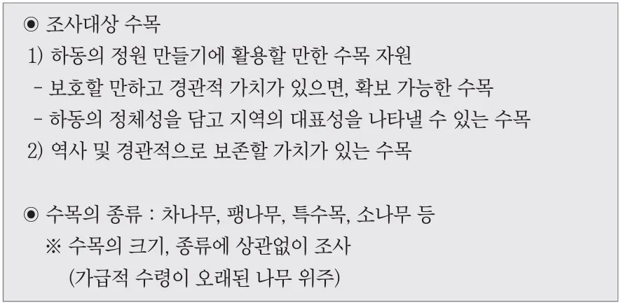 군민정원 만들기에 활용할 만한 수목자원 조사 계획(출처 : 이장단 회의자료)