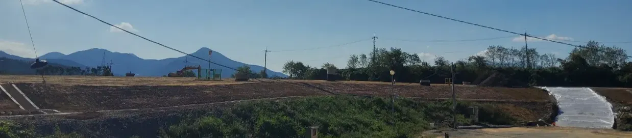 사용 종료된 제1생활폐기물처리장 매립지 모습. 사진에서 보이는 언덕 뒤로 1만 8000제곱미터의 매립지에 복토 작업이 거의 막바지다. 복토 작업 완료 후 가스 발생, 지반 침하 상황 등을 점검하며 30년 간 휴지기에 들어간다.
