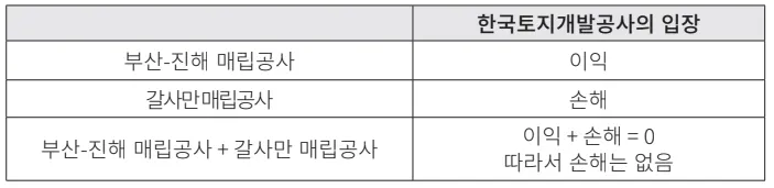 부산-진해 매립공사의 이익으로 갈사만 매립공사 손해를 메꾸면 0이 되니까 손해볼 일이 없다는 해괴망측한 논리인 것이다.