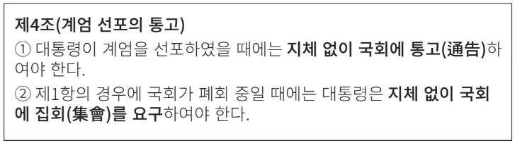 그런데 당시 대통령은 계엄 선포를 국회에 알리지 않았습니다. (헌법 제77조 제5항 위반, 계엄법 제4조 제1항 위반)
