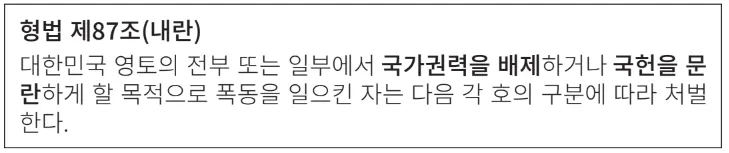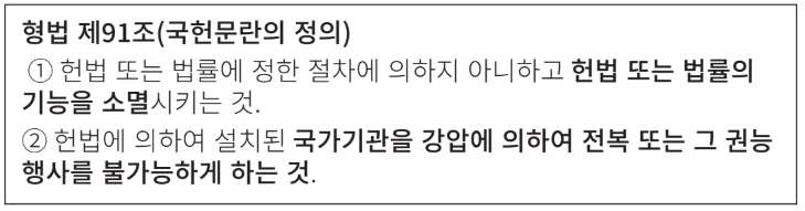이번 계엄은 국가권력의 한 축인 ‘국회를 무력화 시키려고 했기 때문에 형법 제87조에 따라 내란’에 해당합니다. 또한 ‘절차를 무시하고 국회의 기능을 소멸’시키려고 한 점, 헌법에 의해 설치된 ‘국회와 중앙선거관리위원회를 강압적으로 전복’시키려고 한 점 등에 비추어 보면 형법 제91조에서 정의하는 국헌문란에 해당하기 때문에 내란인 것입니다.