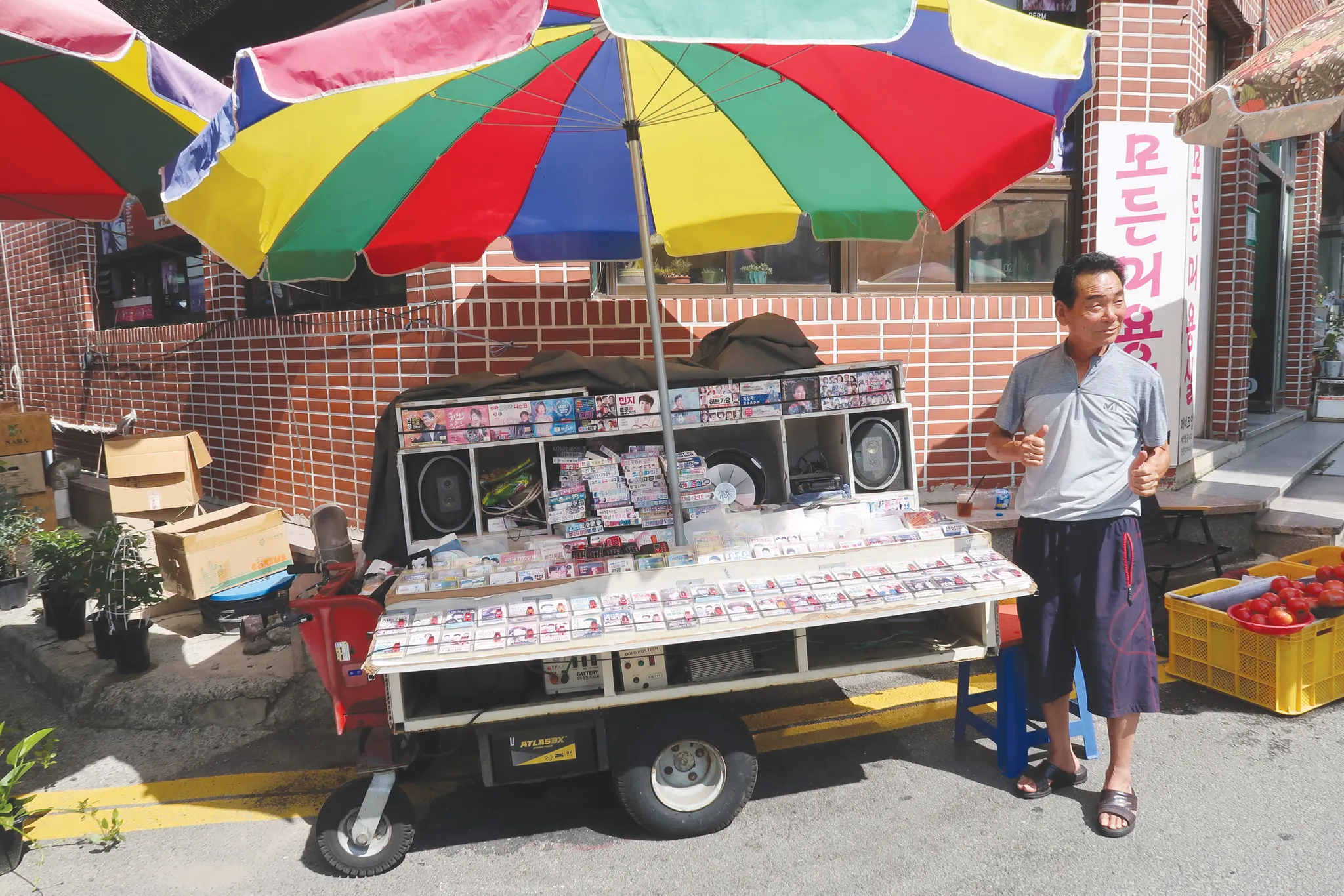 하동읍내 축협 건물 앞에는 요즘 세상에서는 구경하기 힘든 장사를 하는 사람이 있다. 작은 전동리어카에 낡은 음악CD와 USB, 소형 라디오를 파는 이지헌(남, 77세) 씨다. 8~90년대의 한때 ‘길보드 차트’라는 말이 있을 정도로 길거리 리어카에서의 판매량이 음반시장을 좌우하던 시절이 있었다. 국민 1인당 1대 이상의 스마트폰이 보급되고 음원 스트리밍이 음악시장의 대세가 된 지 오래인 세상에서 이토록 낡고 오래고 희귀한 장사를 계속하고 있는 이지헌 씨를 만나봤다.