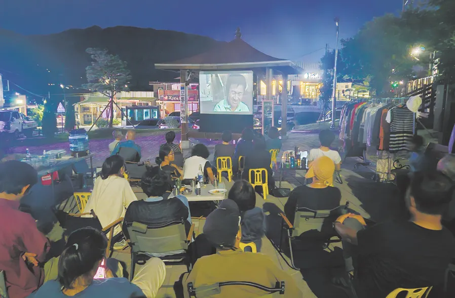 지난 9월 20일 악양면사무소 앞에서 음식과 음악과 옷을 나누는 행사 ‘옷케스트라’가 열렸다. 행사 주최는 악양 면사무소 앞에 있는 순환공간 ‘모두의 가게’이며, 생음악이 연주되는 가운데 가져온 옷을 교환하였다. 어둠이 내릴 즈음에는 싱글맘이 자기 아이를 여러 사람과 함께 키우는 다큐멘터리 영화 ‘침몰 가족’을 감상하였다. 다음은 ‘모두의 가게’(모가) 운영위원 오주옥 씨와의 일문일답이다.