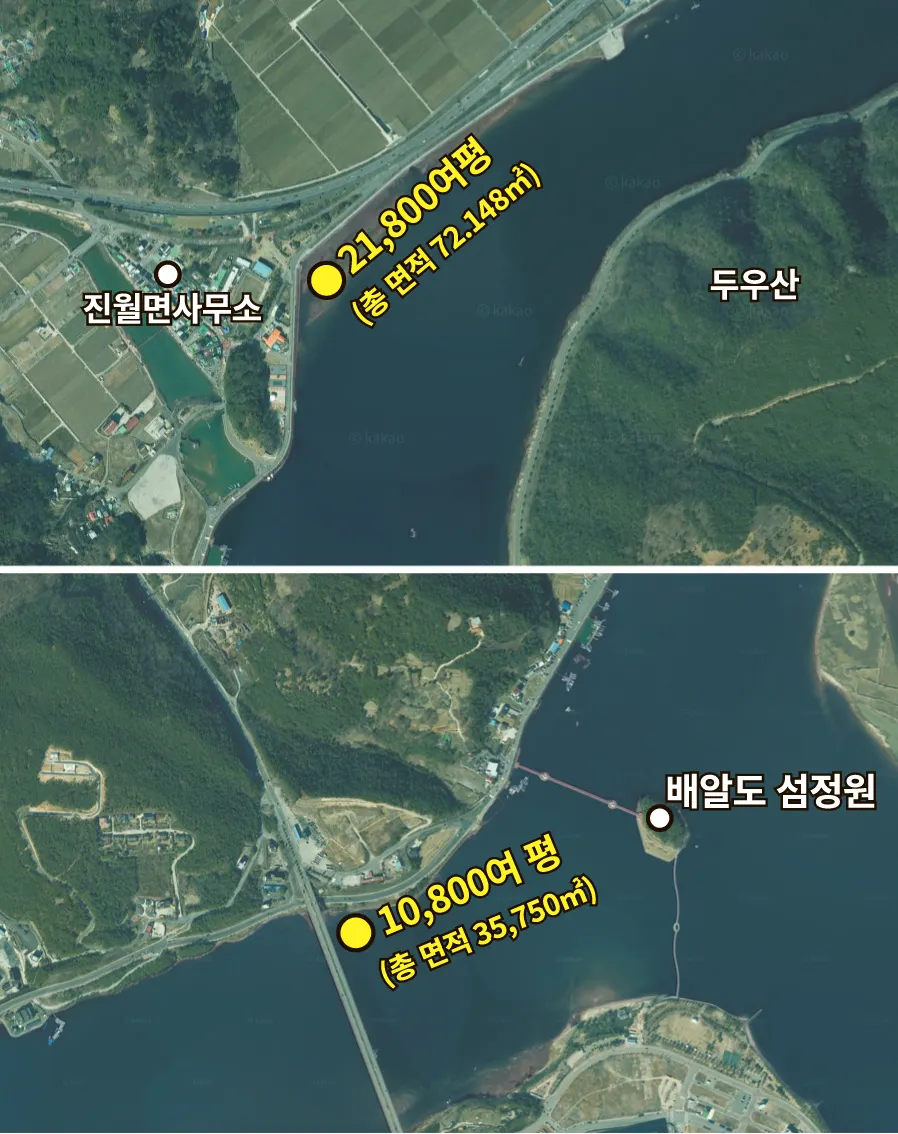 선소리 일대 매립 계획도(상), 망덕리 일대 매립 계획도(하)