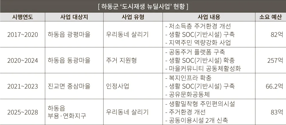 [표] 하동군 ‘도시재생 뉴딜사업’ 현황