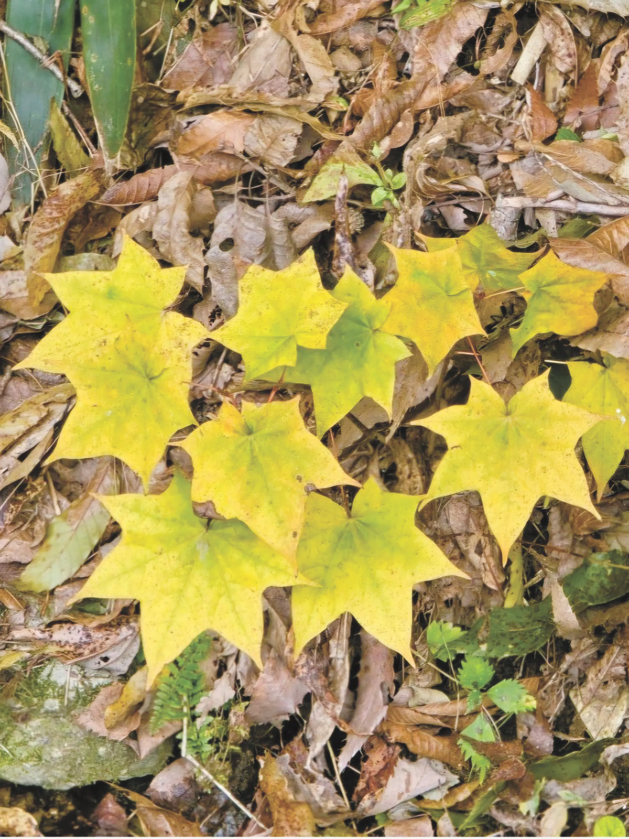 고로쇠 나무의 잎은 단풍나무 잎과 비슷하지만 굴곡 사이가 얕고 톱니가 없다. 겨울이면 노랗게 물든다.