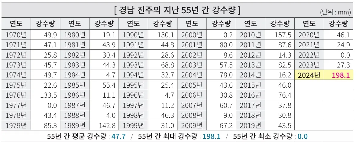 경남 진주, 역대 최대인 198.1㎜의 비가 내려