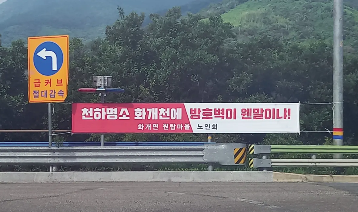 하지만 지난 7월 14일 열린 화개천 재해복구공사 실시설계용역 3차 주민설명회에서도 주민들은 전면백지화를 요구하였으며, 현재 주민들의 강력한 반대에 부딪혀 일시 중단된 상태이다. 피해를 입은 주민들이 홍수방호벽을 오히려 반대하는 이유가 무엇인지 알아보았다.