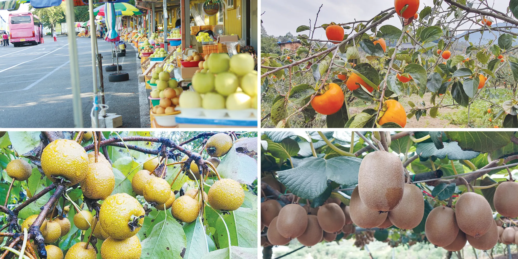 윗줄 : 하동읍 만지배, 악양면 대봉감 / 아랫줄 : 청암면 명사마을 돌배, 양보면 참다래