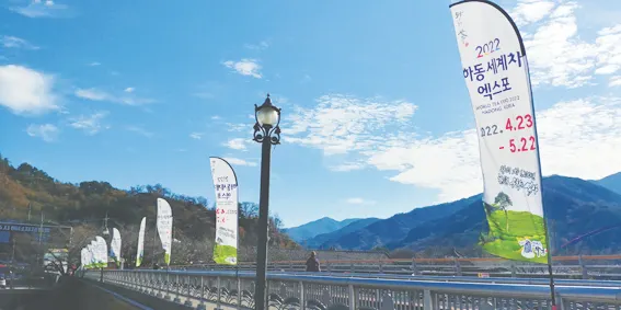 2022 하동차엑스포를 알리는 홍보물이 길가에 늘어서 있다.