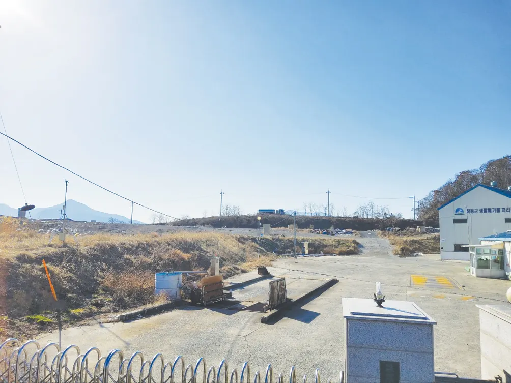 A. 타 시군에 위탁 처리하고 있다. 그래서 수거해놓은 쓰레기들을 임시로 적재하는 장소로 매립시설을 활용하고 있다. 굴착기로 쓰레기들을 긁어내서 위탁업체가 가져가 소각한다.