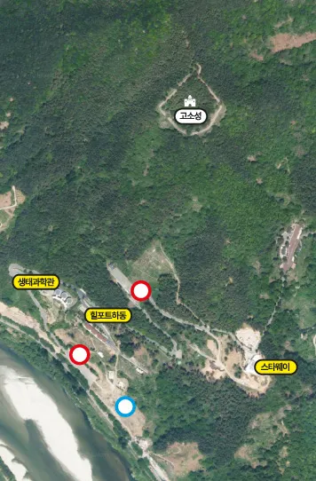 군 행정을 무시하는 행위는 ‘현수막 게시 위반’에서도 드러난다. 사진의 파란 원은 간판이 설치된 장소이고, 붉은 원은 스타웨이 위치를 알리는 현수막이 게시된 장소이다. 현수막도 옥외광고물법에 따라 신고 후 지정 게시대에 게시해야 한다. 그런데도 스타웨이는 정해진 절차를 따르지 않고 지리산 생태과학관과 고소성 생태공원 주차장 입구에 스타웨이를 알리는 현수막을 불법 게시하였다.