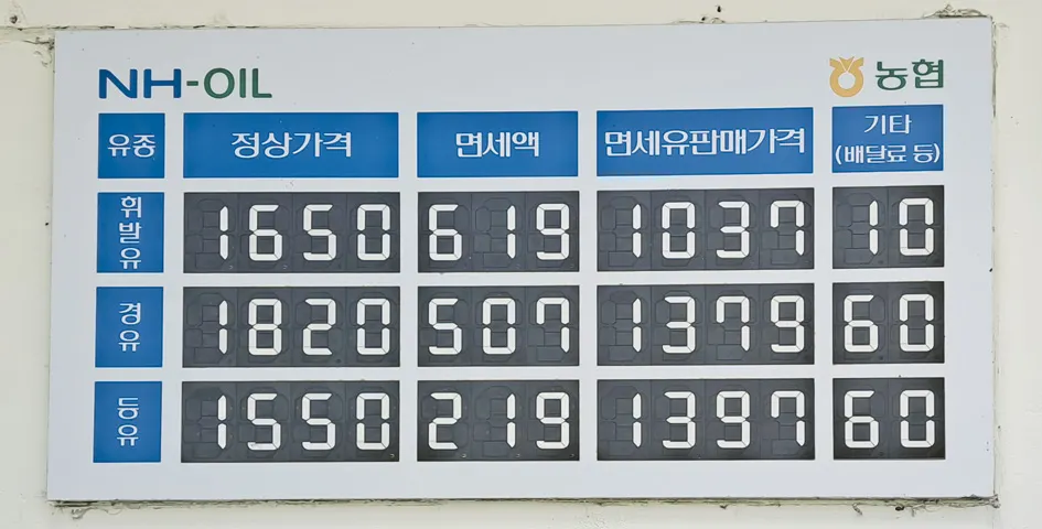 11월 농협주유소 기름값 안내판