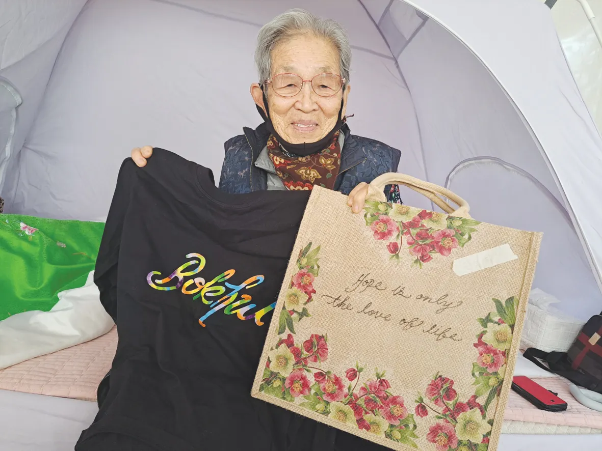 “댄스 수업을 안 하고 있으니까 몸이 찌뿌둥해서 안되겠뜨마. 우리들끼리 이야기해서 돈을 모아서 주기로 하고 부탁을 했제! 누가 찾아와서 이렇게 같이 하니까 얼매나 좋아. 한글 수업도 재미나. 쌍받침이나 어려운 건 몰랐는디 되새겨서 새로 배우니까 여엉 좋단께, 마음이! 그 시간이 기다려지고. 수업을 일주일에 두 번 했으면 좋것어. 1월, 2월도 하고 말이여. 차 딸 때는 바빠서 공부 못허지만. 우리 한글 선생님이 떡 맹그러 가져다주지, 고추 가져가서 빻아다가 가져다주고, 들깨도 짜다가 가져다 주제. 얼마나 고마븐지 몰라. 한번은 고전 어디 가서 옷에 내 이름 글자도 붙이고, 가방도 만들고 구경도 다니고 했다니까. 마술쇼도 해주고”