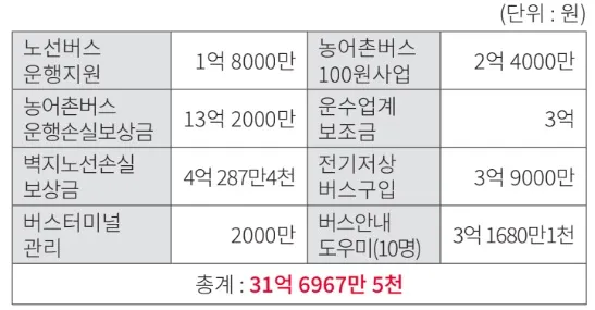 [표] 2024년 하동군 예산안 중 농어촌버스 운영관련 예산