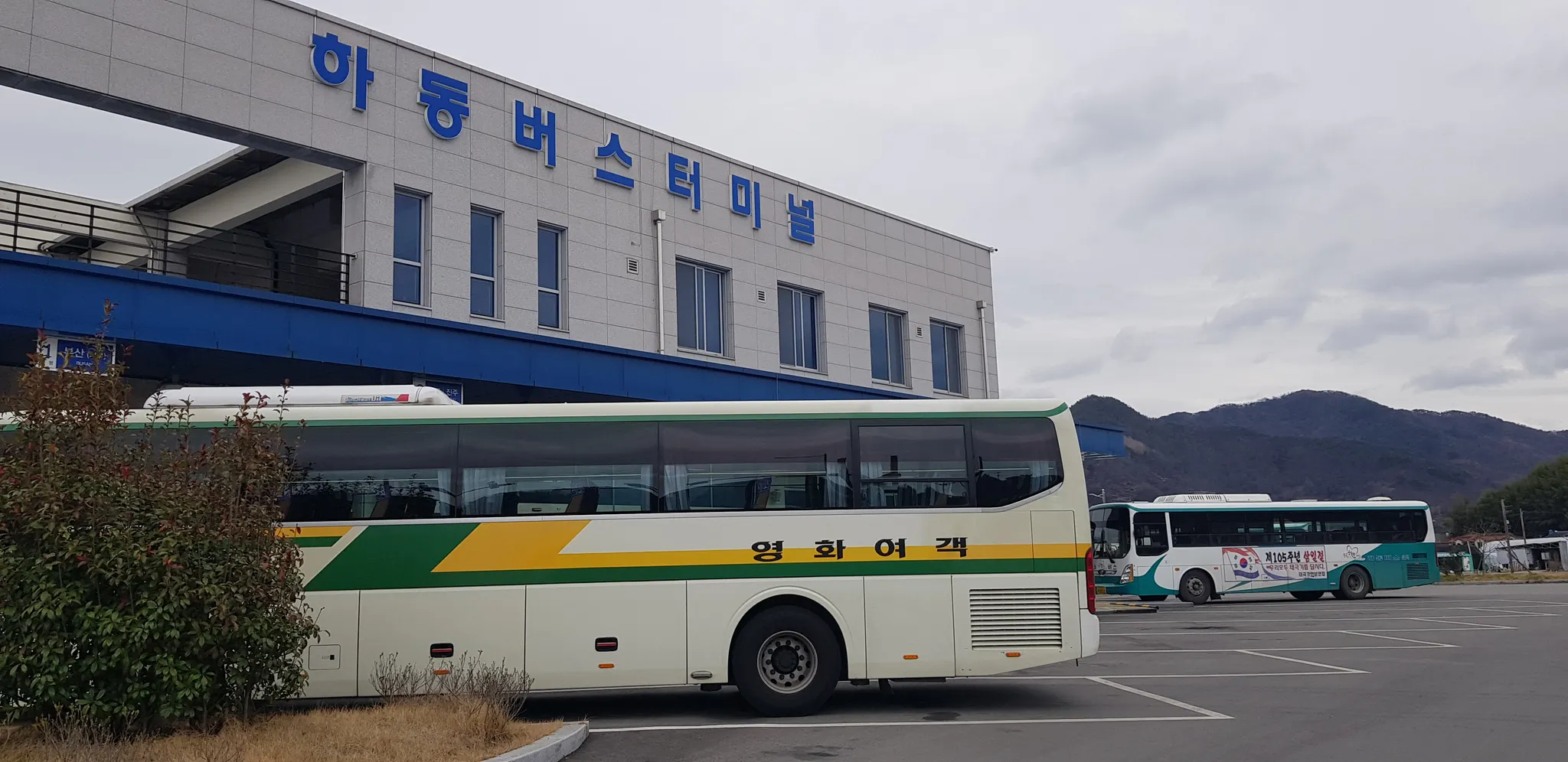 너뱅이길 35에 위치한 하동버스터미널. 2019년 10월에 현재 위치로 이전하였으며 영화여객에서 관리하고 있다.
