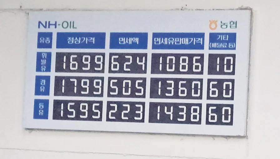 8월 24일 농협 주유소 기름값 안내판