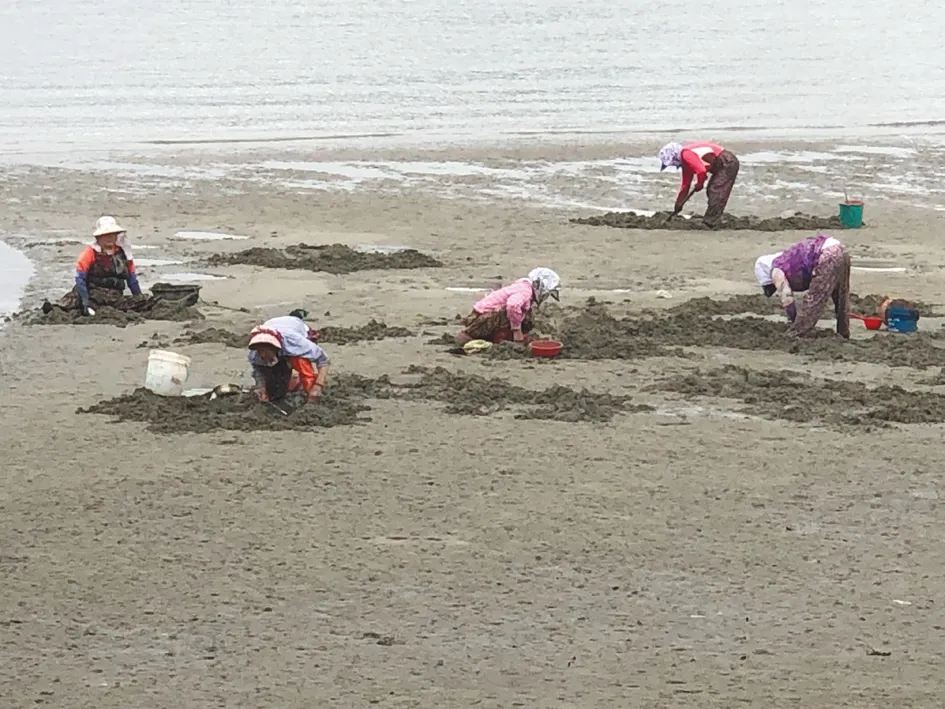 나팔마을 주민들이 바닷가에서 ‘쏙’을 잡고 있다.