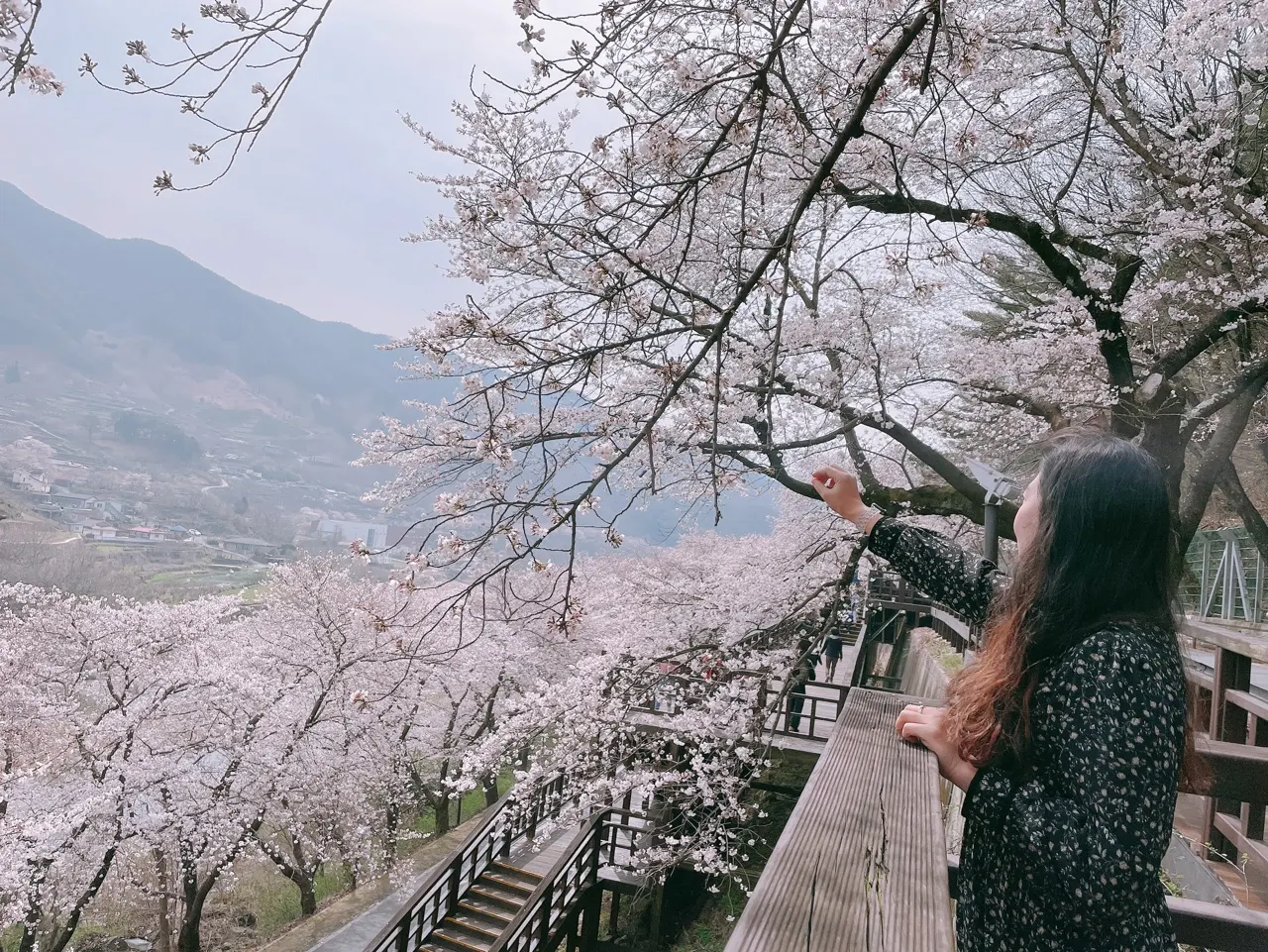 섬진강 벚꽃길: 파릇파릇 새싹이 돋고 벚꽃과 매화, 산수유가 만개하여 마치 흰 도화지에 알록달록 물감을 떨어트린 것 같았다.