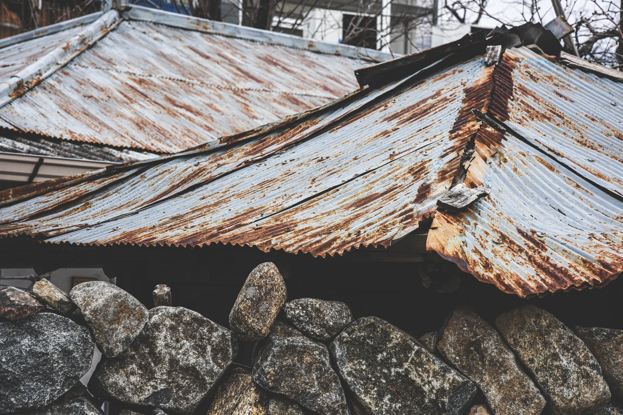 녹슨 양철지붕의 끄트머리는 처절함이.