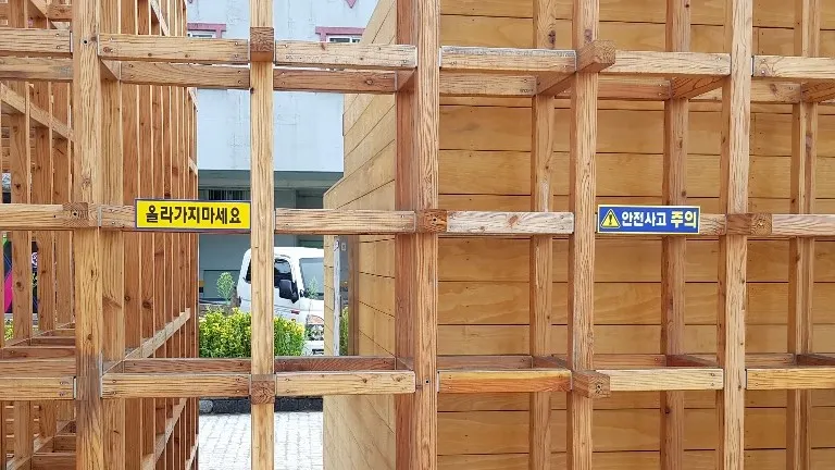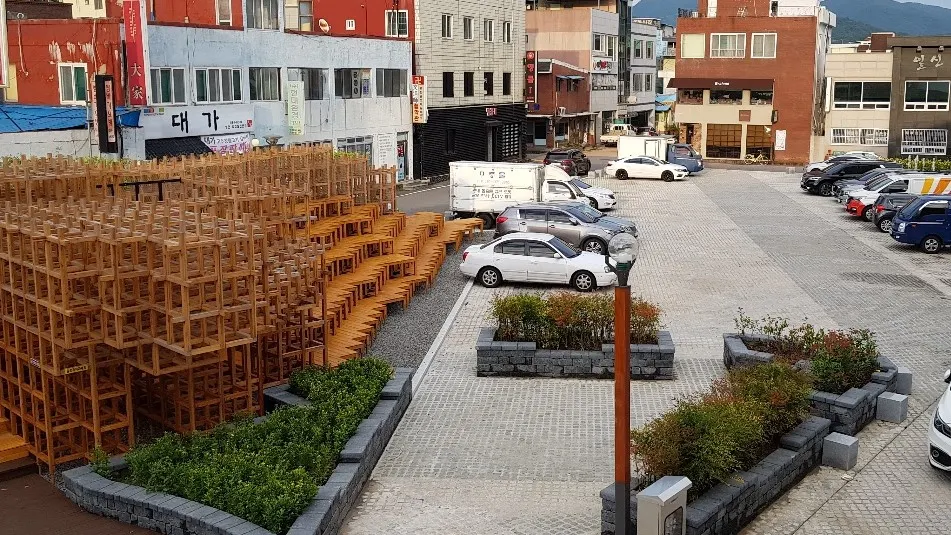 현장을 직접 찾아가 보았다. 부지의 끝 쪽 부분 두 군데에 있는 우드 정글짐이 가장 먼저 눈에 들어왔다. 가로-세로-높이 40cm짜리 목조입방체를 쌓아올린 정글짐은 대략 2~3미터의 높이로 우뚝 서 있는데 조형물이라 하기엔 주변과 너무 어울리지 않았고, 놀이시설이라 하기엔 너무 위험해 보였다. 실제로 지난 7월25일 저녁 근처를 지나가던 주민이 정글짐에 얼굴을 부딪혀 코뼈가 부러지는 사고가 있었다. ‘올라가지 마세요’, ‘안전사고 유의’라는 팻말이 여기저기 붙어 있는 정글짐을 보고 있자니 위화감마저 들었다. 햇볕 한 줌 피할 곳 없는 넓은 공터에는 차들이 여기저기 주차해 있어 광장이란 말이 무색했다. 아이들의 놀이터로 활용될 것이라는 바닥분수는 구석에 배치돼 있고 그마저도 차들에 막혀 눈에 띄지 않았다.