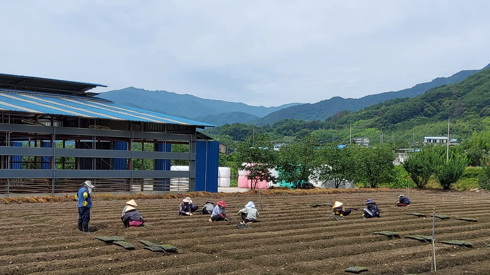베트남 모자 논라(non-la)를 쓰고 일하고 있는 외국인 노동자들. 하동의 들녘에서 흔히 볼 수 있는 모습이다.