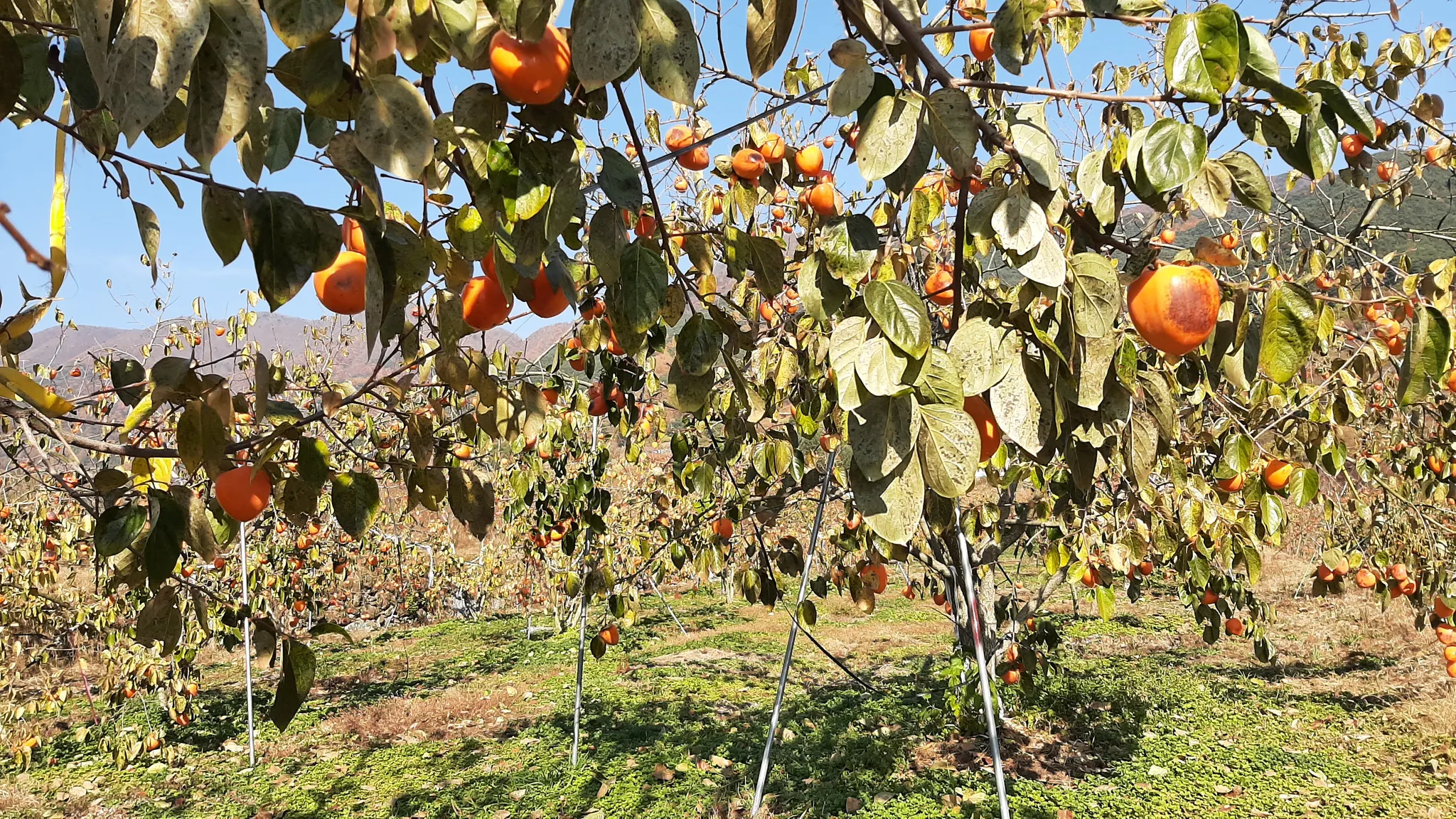 대봉감밭. 대봉감을 미처 수확하지 못하고 있다