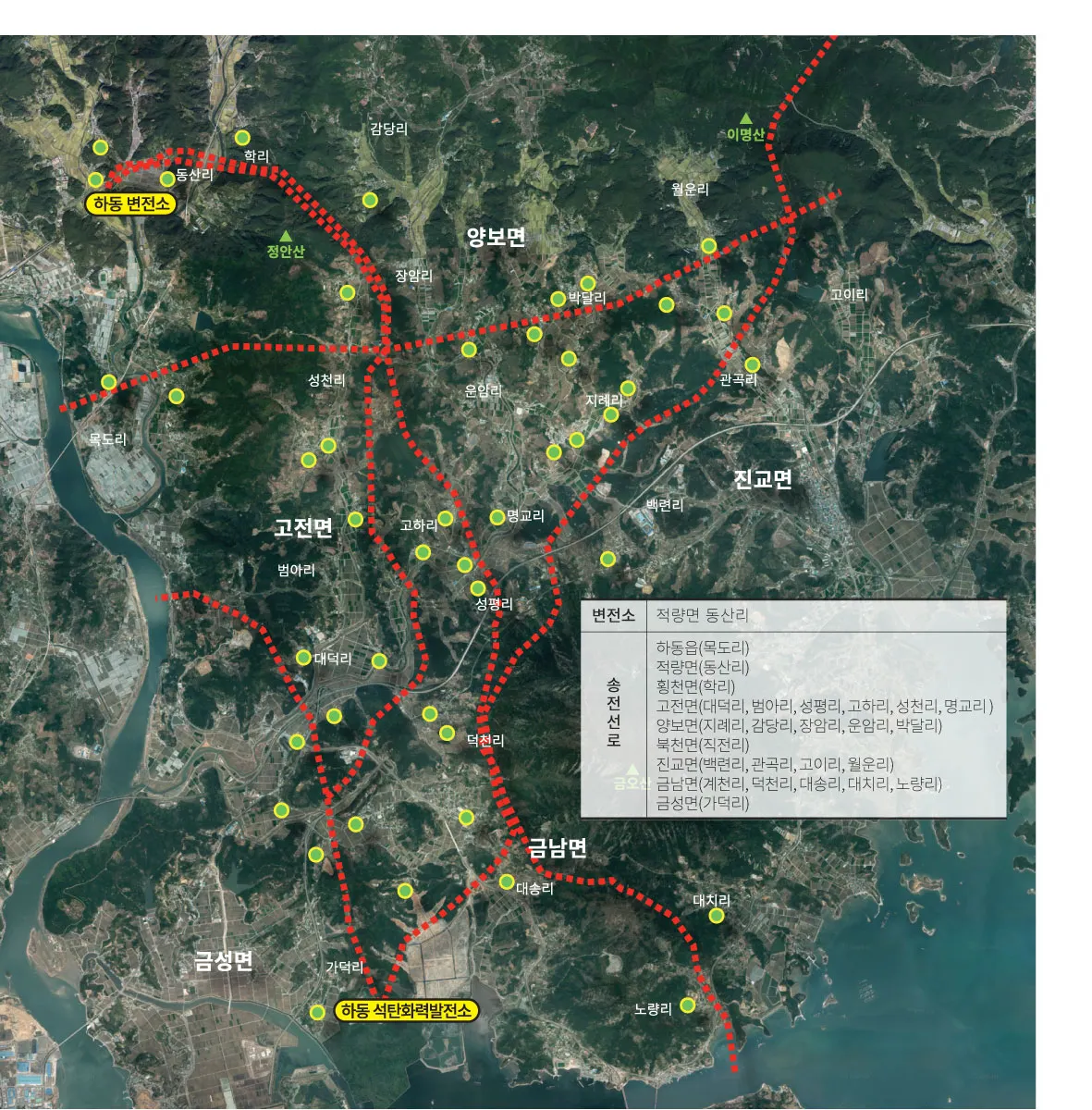 최근 하승철 하동군수는 한국전력과의 면담에서 “기술적인 측면만 고려할 것이 아니라 사회‧자연조건 등 다양한 관점에서 접근이 필요하며, 지역 주민들과의 협의가 가장 중요하다”고 밝혔다. 하 군수의 말대로 실제 ‘주민과의 협의를 가장 중요’시하는 하동군 행정이 이루어질지 주목해야 할 때이다.