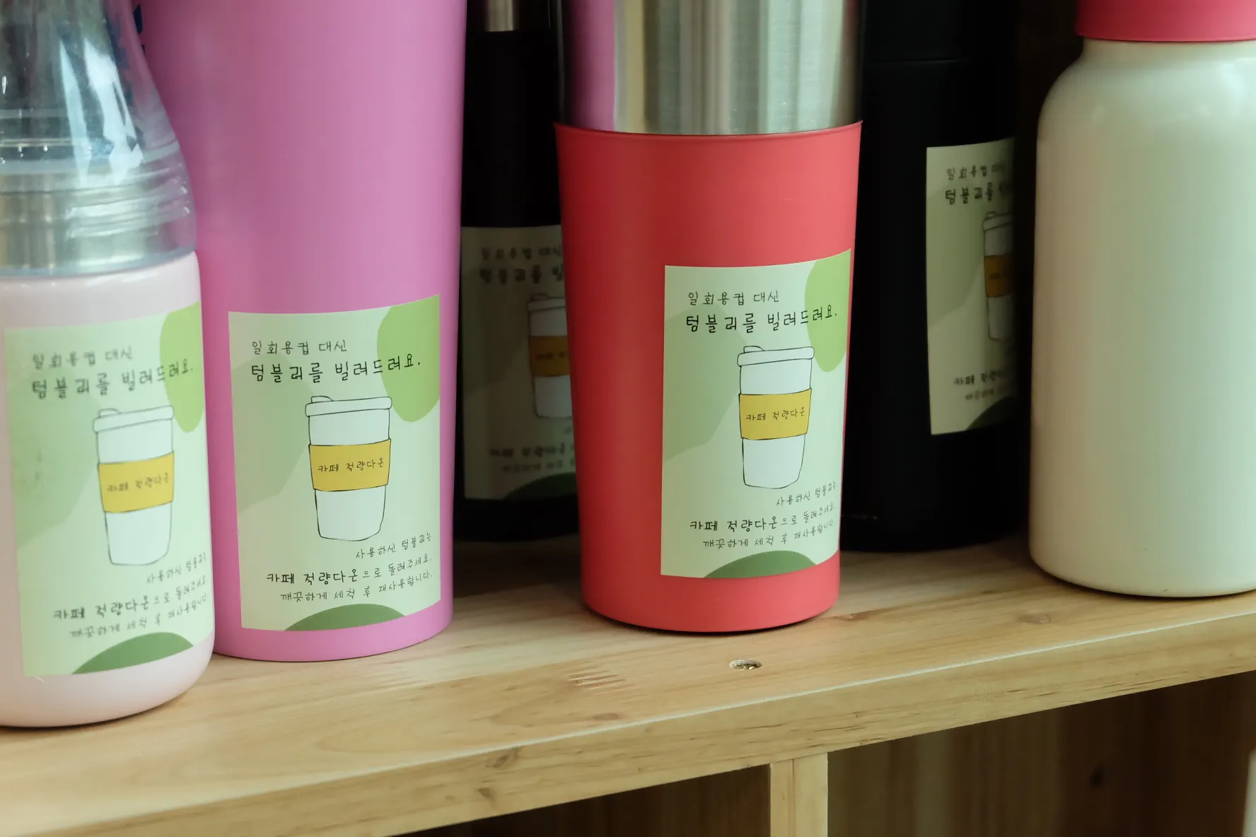 ‘카페 적량 다온’에서는 개인용 텀블러를 가져오지 않는 손님을 위해 텀블러를 대여한다.