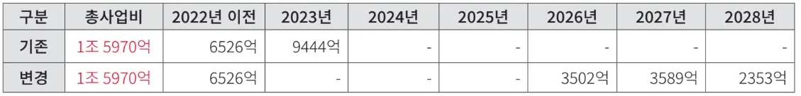 [표1] 연도별 투자계획 변경 내용(단위 : 원)