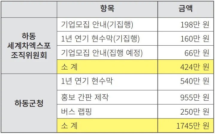 하동세계차(茶)엑스포가 준비부족으로 1년 후로 연기되었다. 엑스포의 연기에 따라 추가로 소요되는 예산이 얼마나 되는지 알아본다.