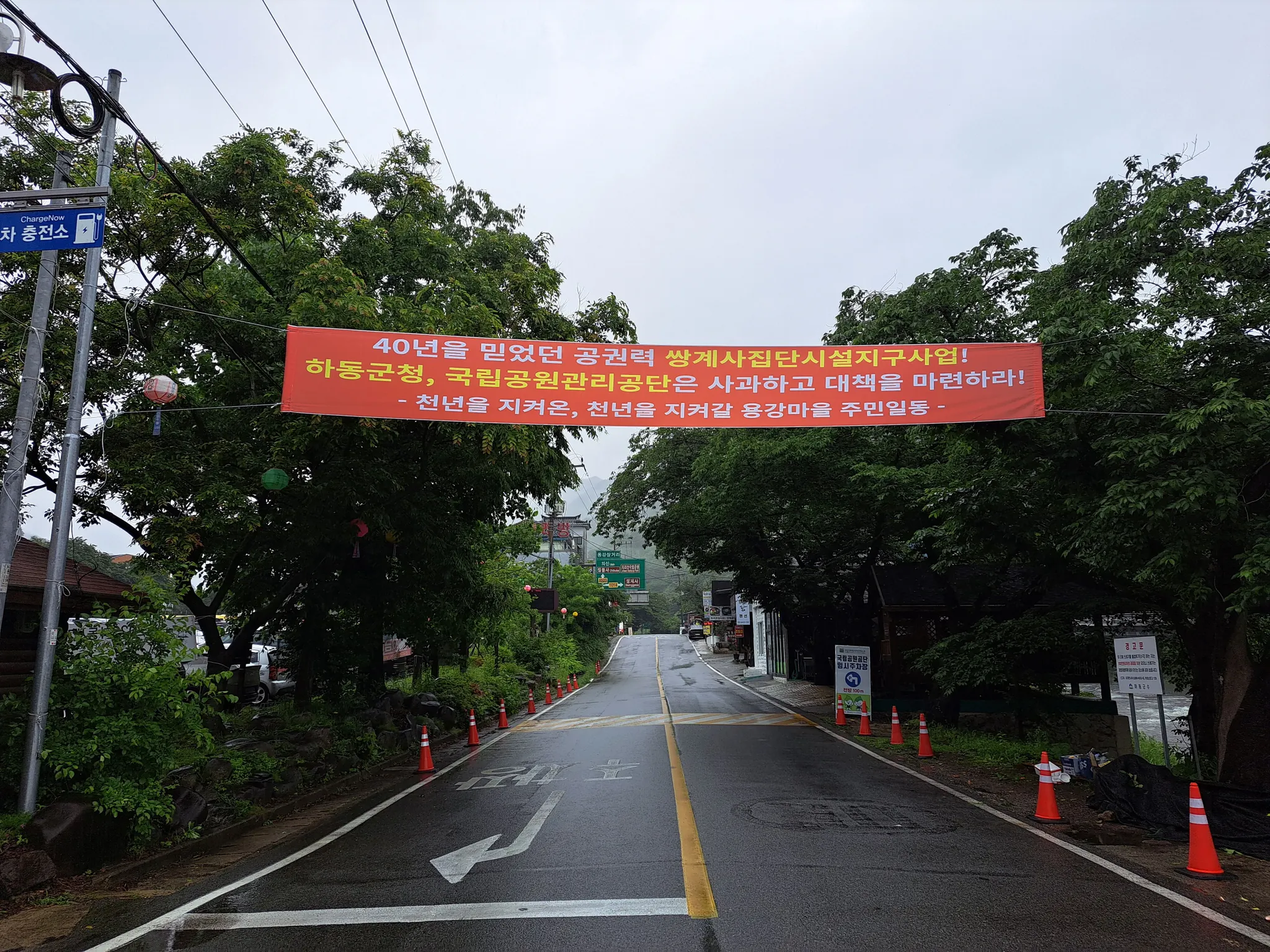 쌍계사 주차장 앞에 게시된 반대 현수막