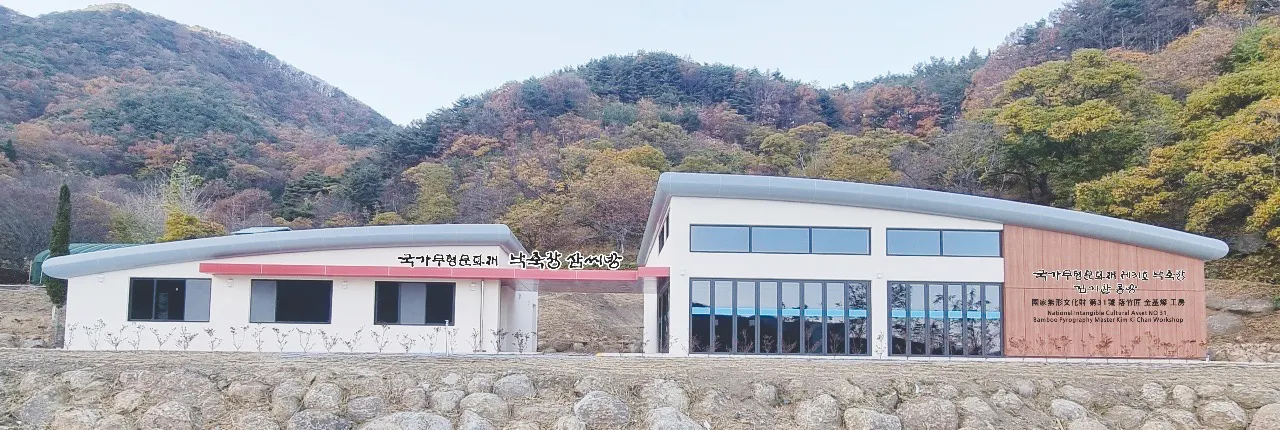 적량면 구재봉 자연휴양림 인근에 들어선 ‘국가무형문화재 낙죽장 공방’: 철근콘크리트 슬라브구조물 2동으로, 공방·수장고·사무실·전시실·회의실 등의 시설을 갖췄다.