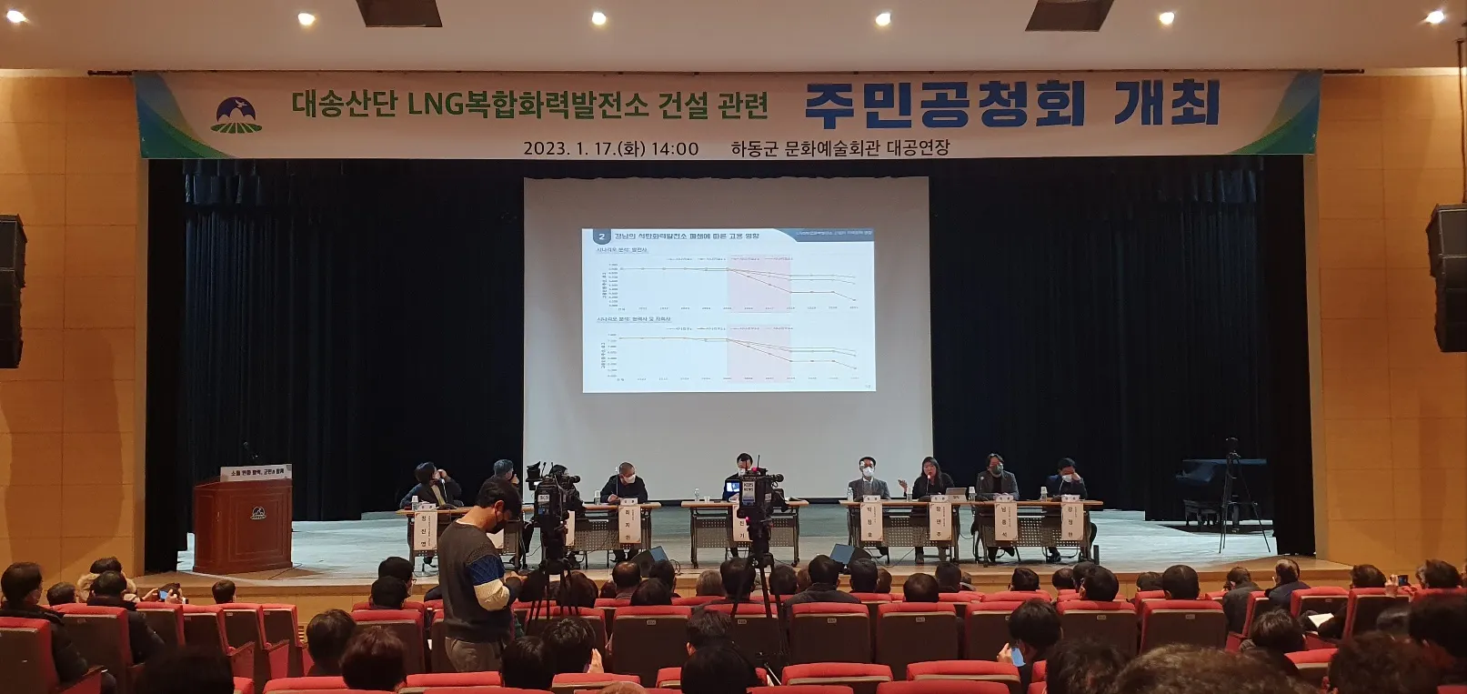 지난 1월 17일, 하동문화예술회관 대공연장에서 하동군이 주최하는 ‘대송산업단지 LNG복합화력발전소 건설(안)에 대한 주민공청회’가 열렸다.