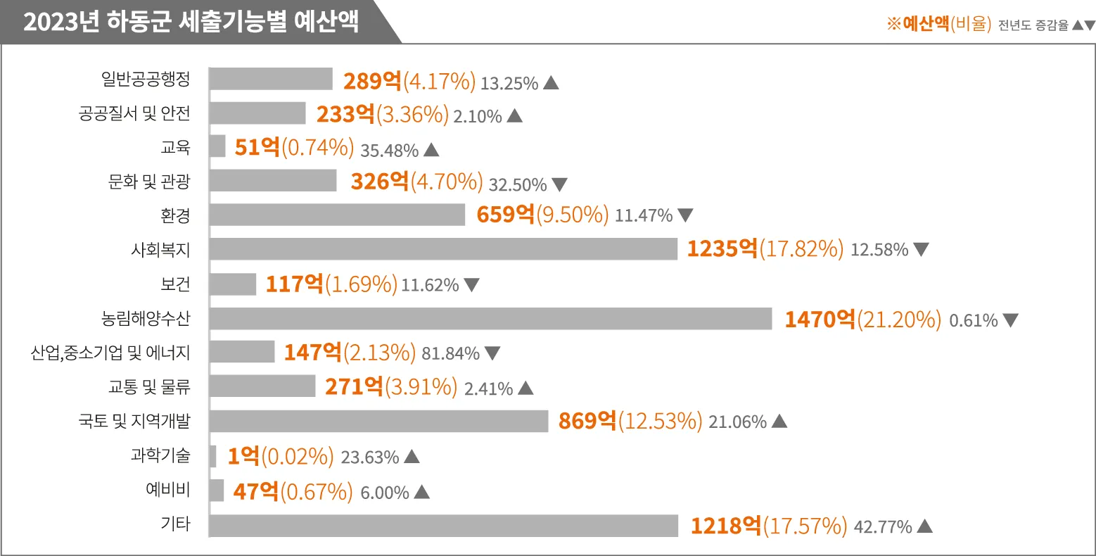 전년 대비 가장 높은 증가율을 보인 것은 ‘기타’ 항목으로 42.77% 상승했다. 작년보다 400억 가까이 증가한 것인데, 이는 대송산단 관련 지방채 상환, 그리고 이자 부담금 때문이다.